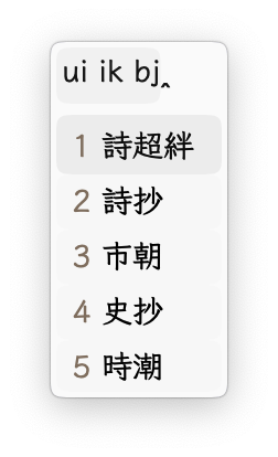 如果您需要使用兩個輔助碼定位單字,請務必添加 o 或 / 補碼,得到沒有 ⚡ 標記的候選才可以。