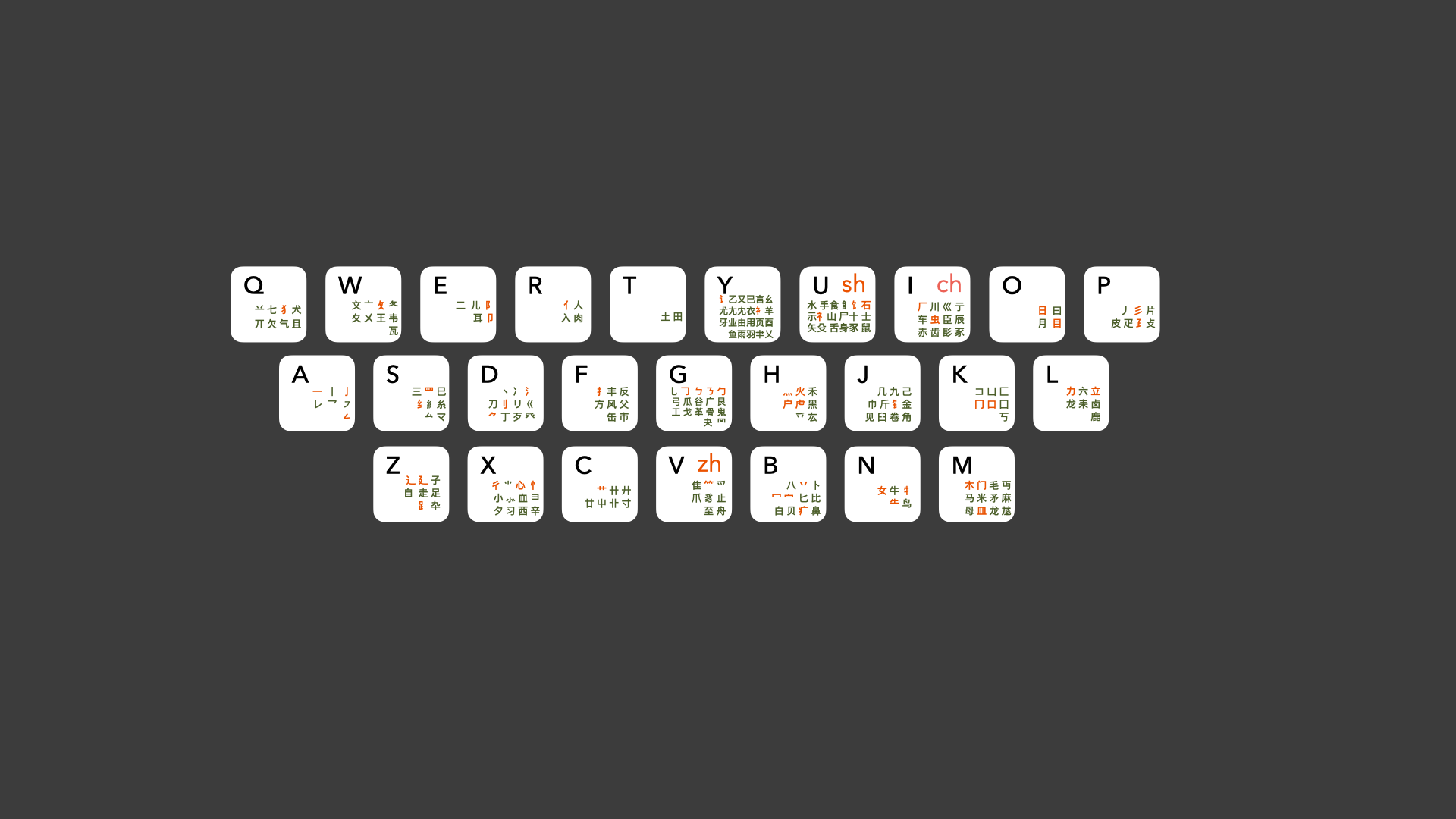 大部分字根归类到其声母键位上,只有少量字根需要特别注意(按重要程度排序):