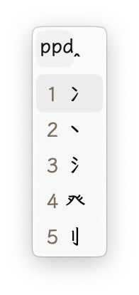 - 第一个字母 取这个字的 部首 的双拼首字母。